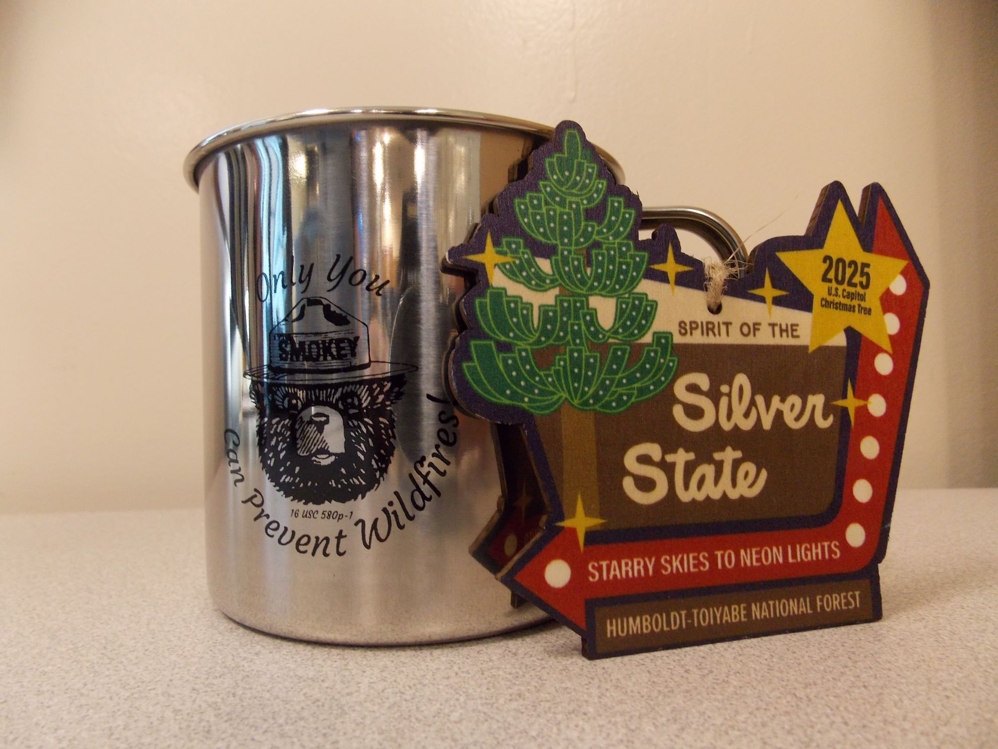 2025 Capitol Christmas Ornament, Spirit of the Silver State. Humboldt-Toiyabe National Forest in Nevada. Wooden ornament with twine hangar.